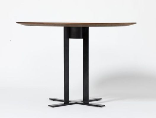 سطح من قشرة خشب الجوز مع قاعدة معدنية سوداء طاولة غرفة طعام مستديرة