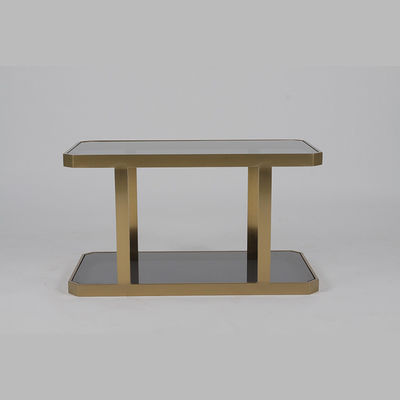 RCT-1220 الشمال نمط مربع الزجاج المقسى أعلى الذهب قاعدة الفولاذ المقاوم للصدأ طاولة جانبية طاولة القهوة